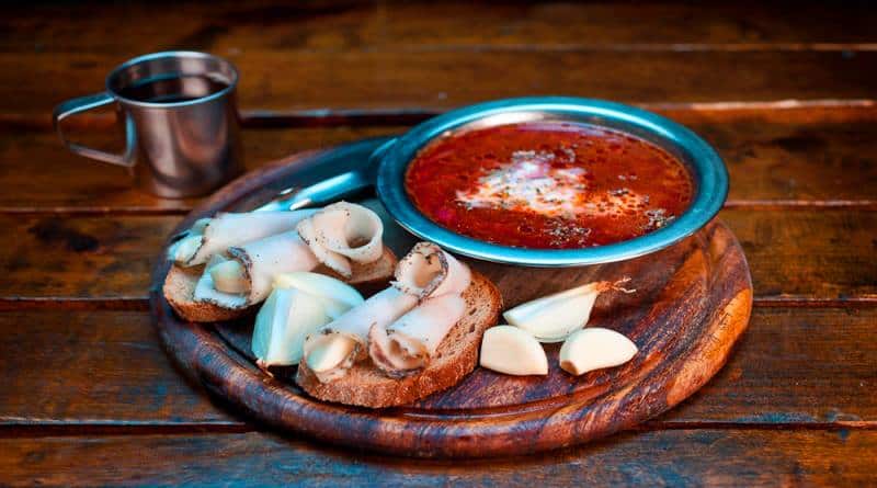 Dag na dag zit het restaurant tjokvol met toeristen en locals. Het eten is eenvoudig, traditioneel Oekraiens. De meter worst is erg populair, maar ook verschillende plankjes met vleeswaren en ingemaakte groenten (met name augurken, uien en kool) doen het goed. Natuurlijk geen Lardo di Colonnata, maar de lokale Spek variant is heerlijk. Bij een traditionele Oekraïense maaltijd hoort natuurlijk ook zelf gedestilleerde Horilka of Uzvar van lokale vruchten. De varianten gemaakt van de bessen van de Gelderse Roos zijn met name populair in deze regio.