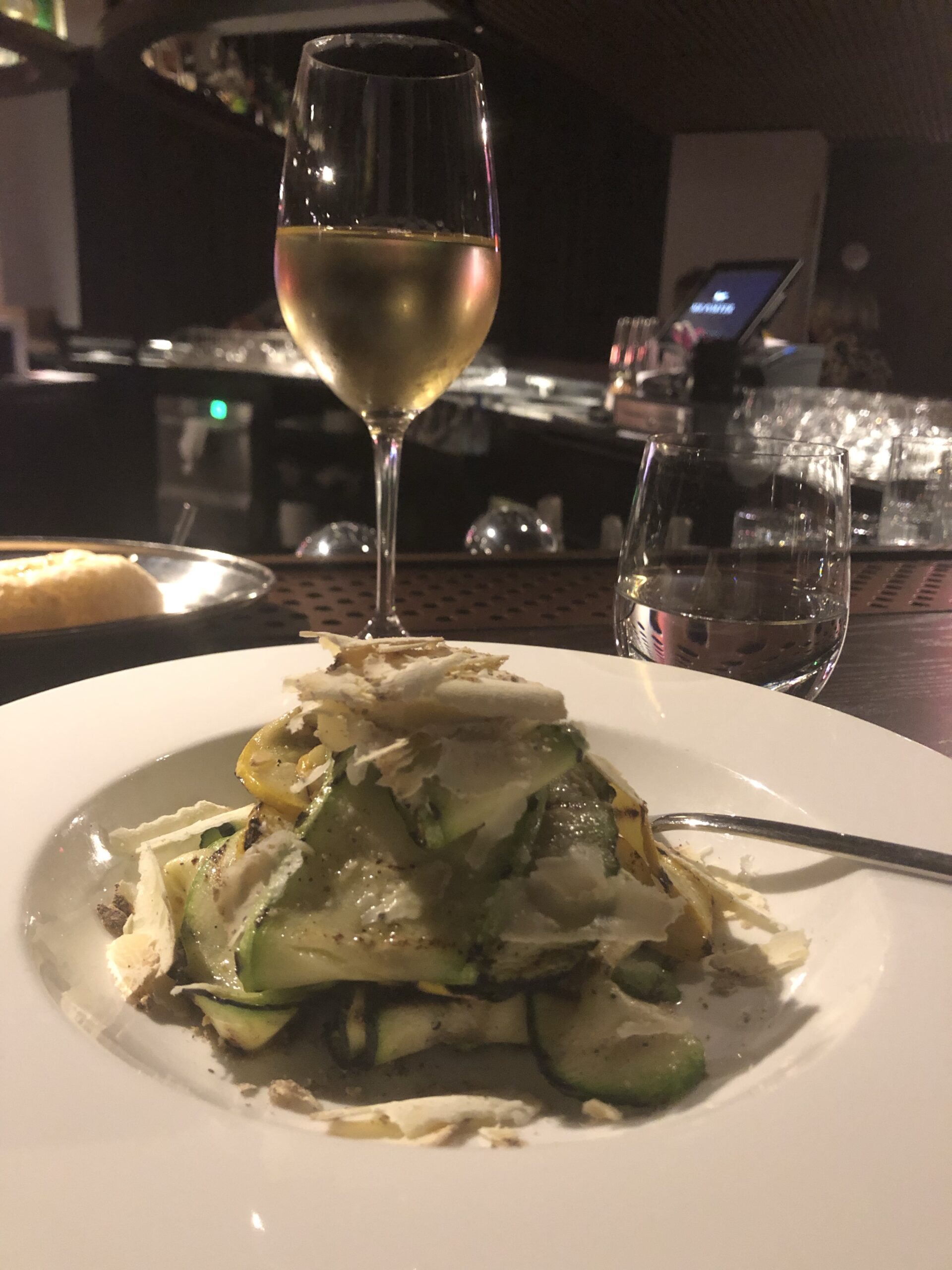 We begonnen met een Zucchini Carpaccio gevolgd door een Rib Eye met als dessert een crème brûlée met popcorn. De Zucchini (courgette) carpaccio was overheerlijk en de Rib Eye was om te zuigen. Als crème brûlée addict was is aangenaam verrast door de combinatie met popcorn, maar over het geheel genomen vindt je dezelfde kwaliteit in Barcelona bij een willekeurig Argentijns restaurant voor de helft van de prijs,